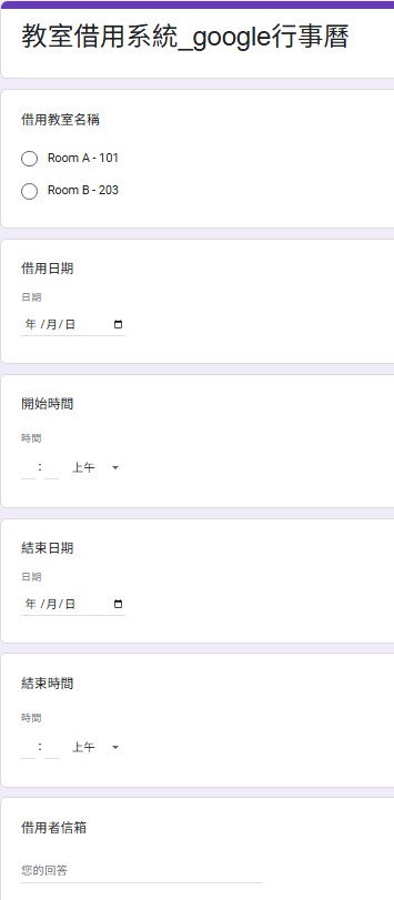 由於表單只有設定填寫借用者信箱,沒有設定其他資料,例如:姓名、電話等等