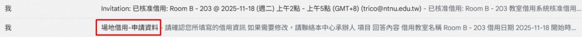 這樣借用人送出表單之後,就會收到通知信跟附件