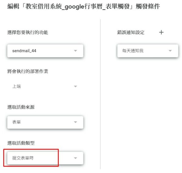 * @param {GoogleAppsScript.Events.FormsOnFormSubmit} e 觸發事件物件,包含表單回應資訊。