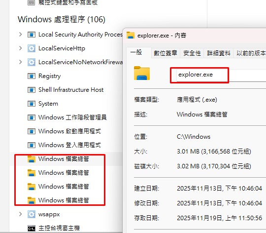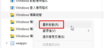 找到explorer.exe,win 11的介面是在"Window處理程序"-Windows檔案總管