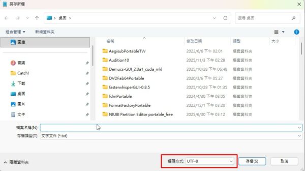 假如用windows內建的"記事本",在存檔的時候