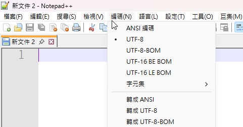 如果是用"Notepad ++",就要在編碼選單中設定